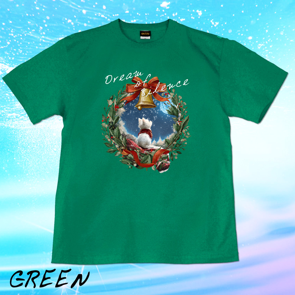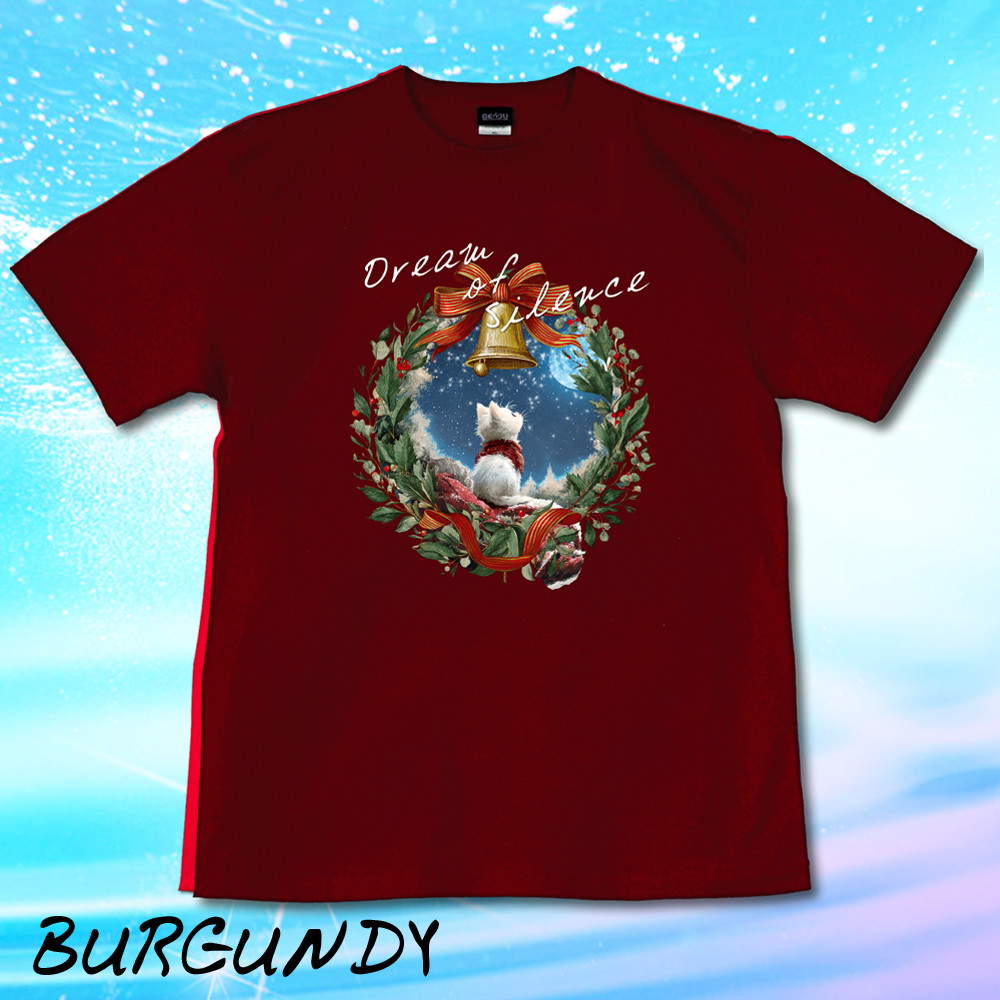 雪が降り始める夜空を見上げる白猫の姿。優しく敷かれたサンタクロースの衣装に包まれて、彼はどのような夢を見るのでしょうか? まるで映画のワンシーンのような静かで寂しく、そしてドラマティックなデザインです。 GENJUにしては印刷範囲がシンプルでバランスの取れたレイアウトで、クリスマスでなくとも違和感のない美麗なデザインTシャツとなっています。