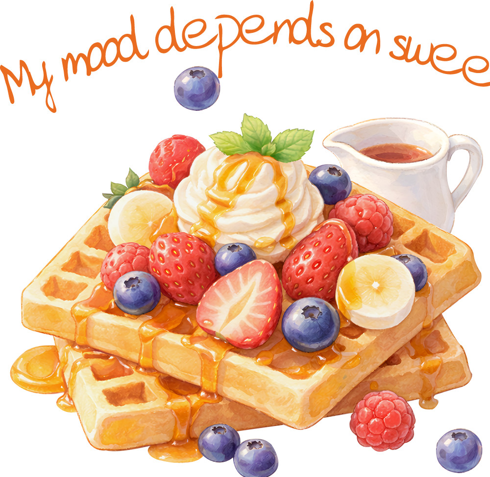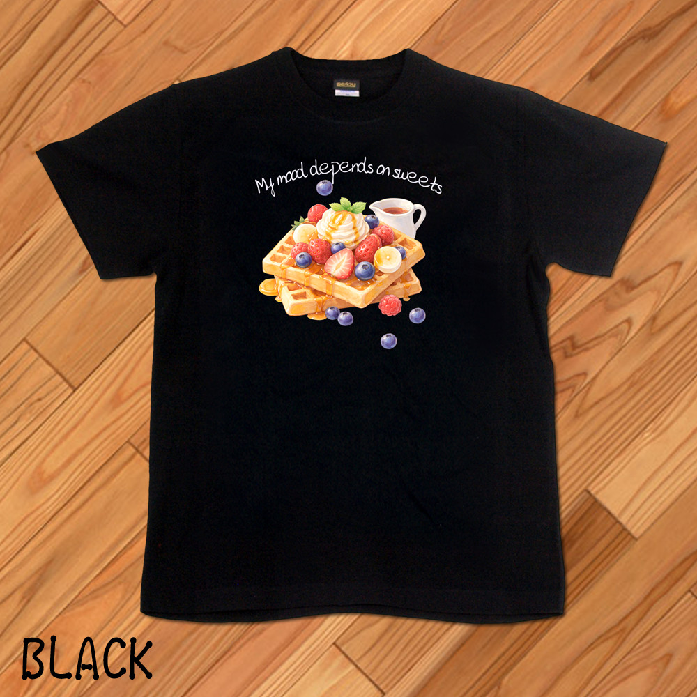 GENJU ワッフル 果物 はちみつ スイーツ アイスクリーム メンズ レディース Tシャツ 半袖 長袖 My mood depends on sweets3 大きめサイズあり XXL XXXL 2L 3L 4L