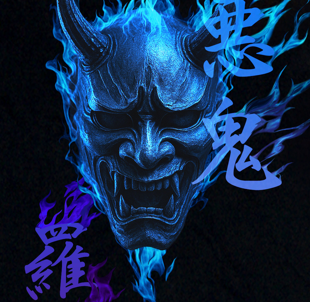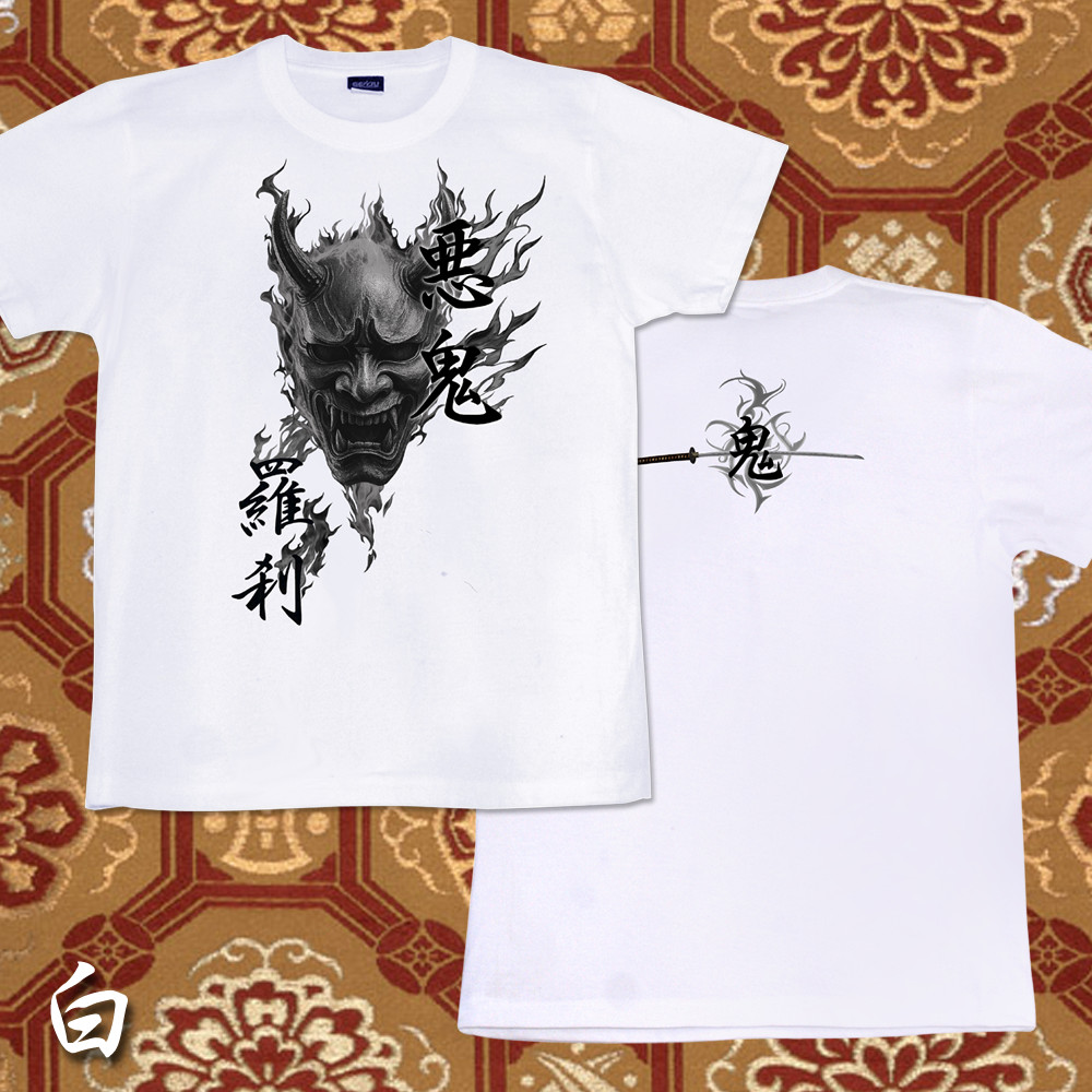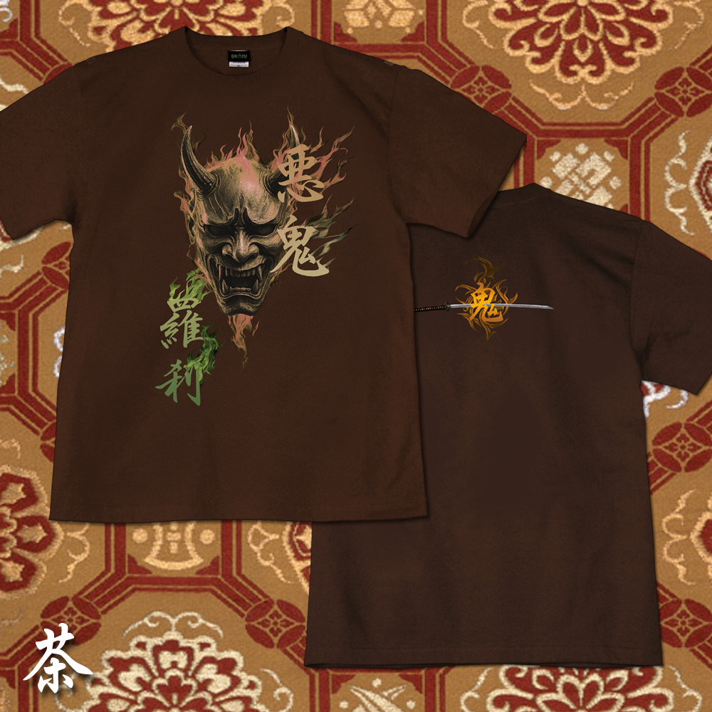 GENJU 般若 日本刀 炎 和柄 能面 悪鬼羅刹 メンズ レディース トライバル Tシャツ 半袖 長袖 羅刹の焔 大きめサイズあり XXL XXXL 2L 3L 4L
