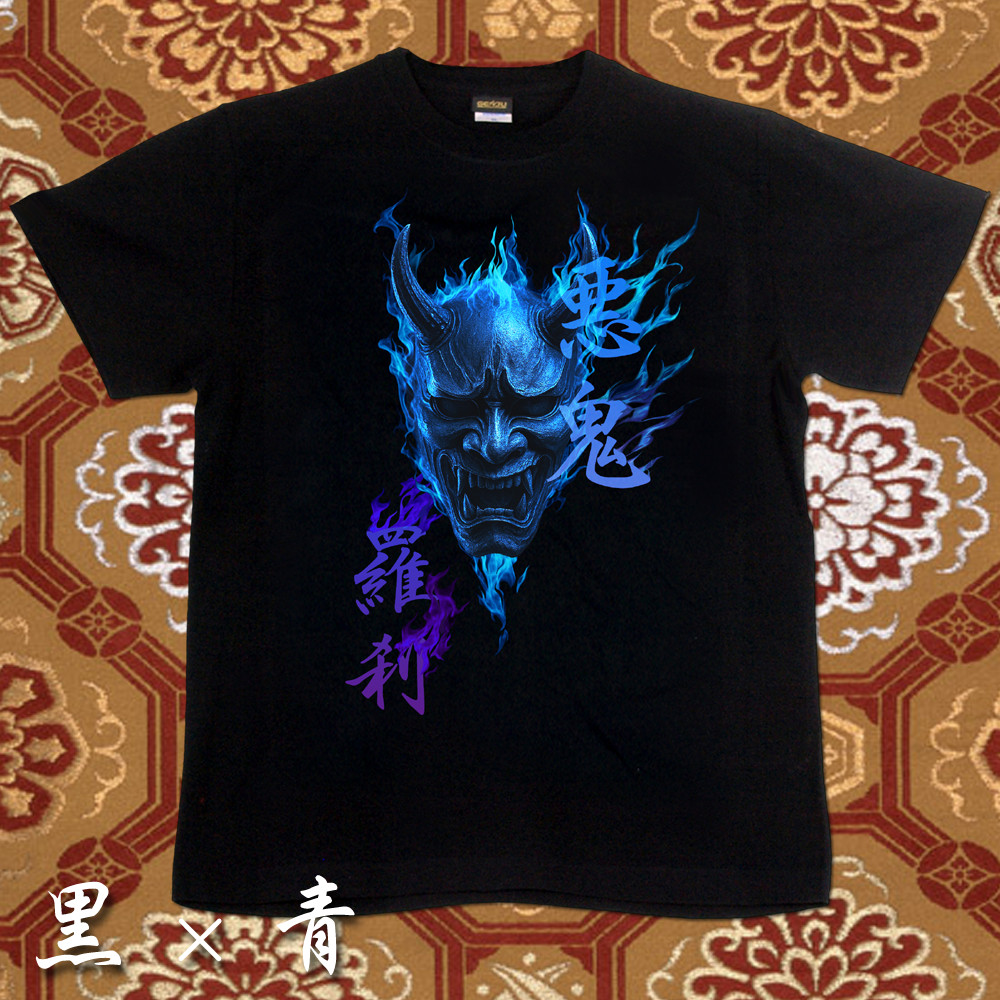 GENJU 般若 日本刀 炎 和柄 能面 悪鬼羅刹 メンズ レディース Tシャツ 半袖 長袖 羅刹の焔 大きめサイズあり XXL XXXL 2L 3L 4L