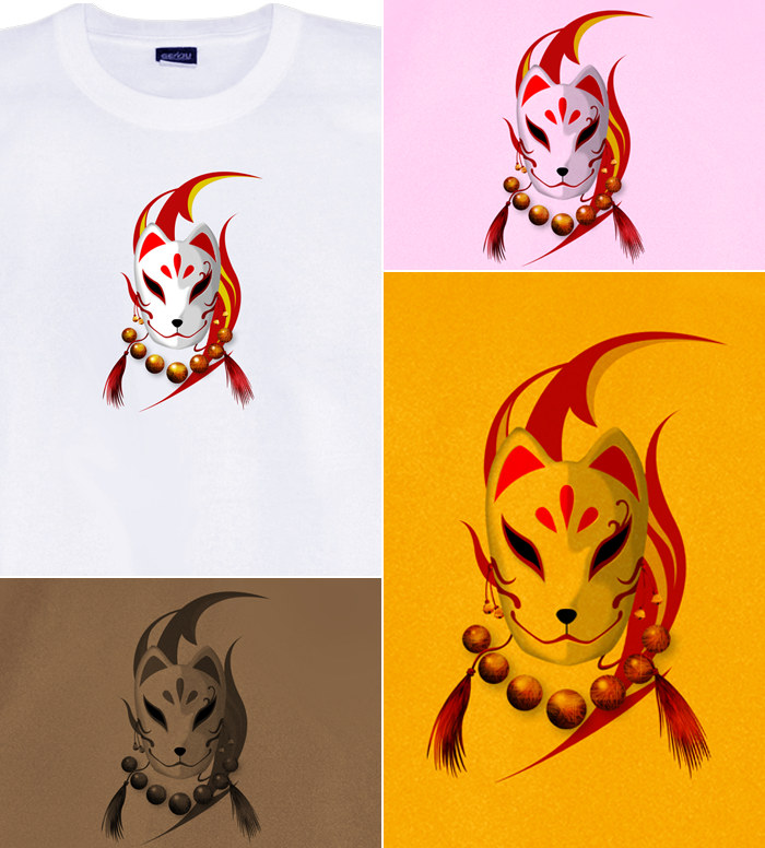 和柄(狐面)のシンプルでスタイリッシュなデザインTシャツです。