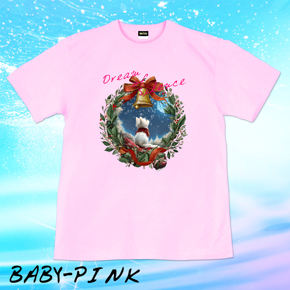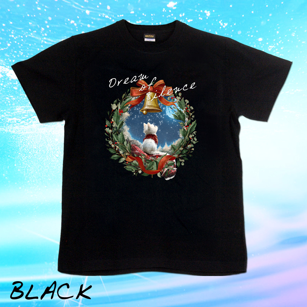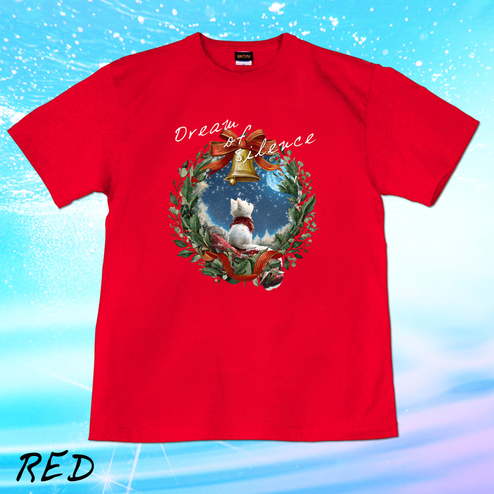 雪が降り始める夜空を見上げる白猫の姿。優しく敷かれたサンタクロースの衣装に包まれて、彼はどのような夢を見るのでしょうか? まるで映画のワンシーンのような静かで寂しく、そしてドラマティックなデザインです。 GENJUにしては印刷範囲がシンプルでバランスの取れたレイアウトで、クリスマスでなくとも違和感のない美麗なデザインTシャツとなっています。