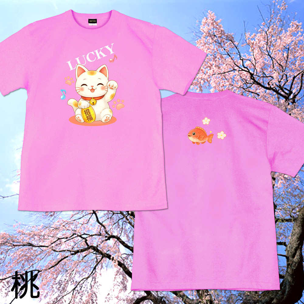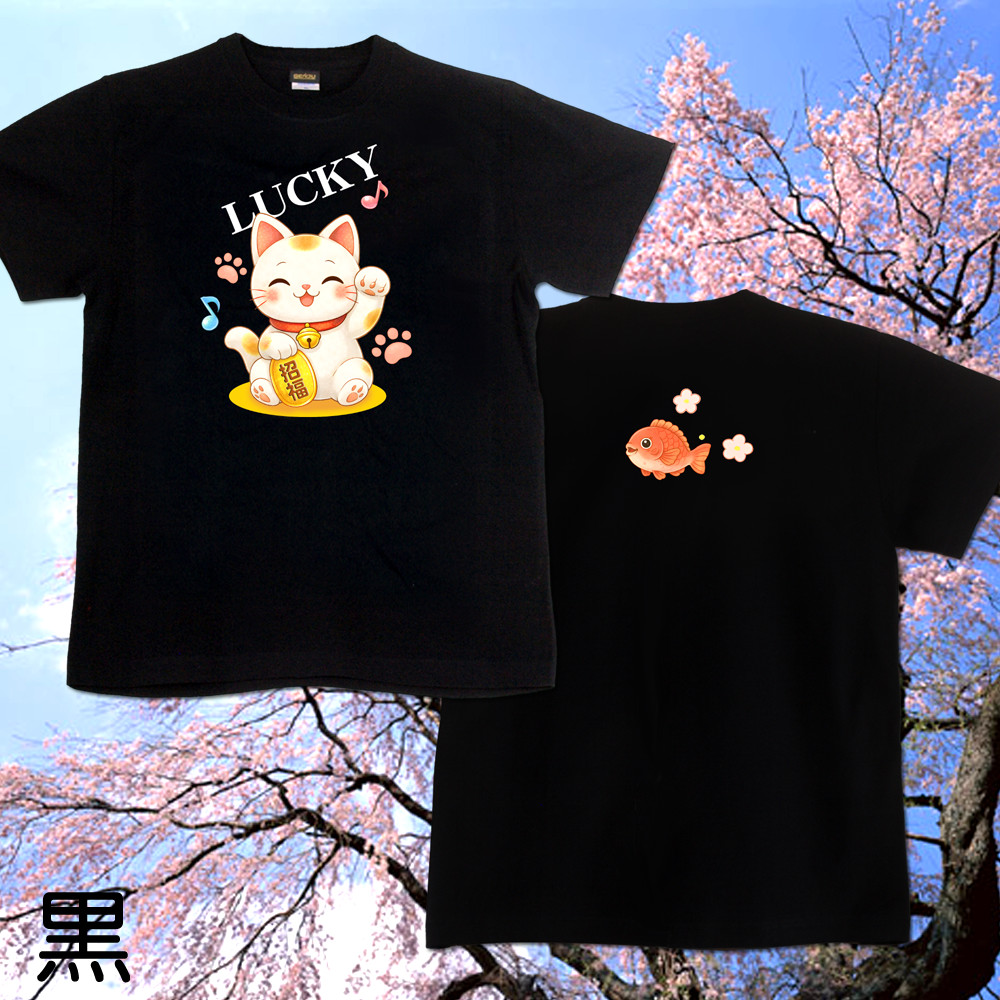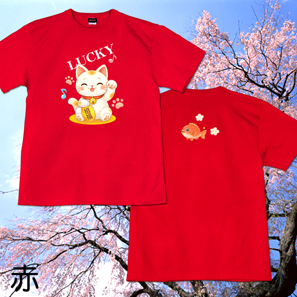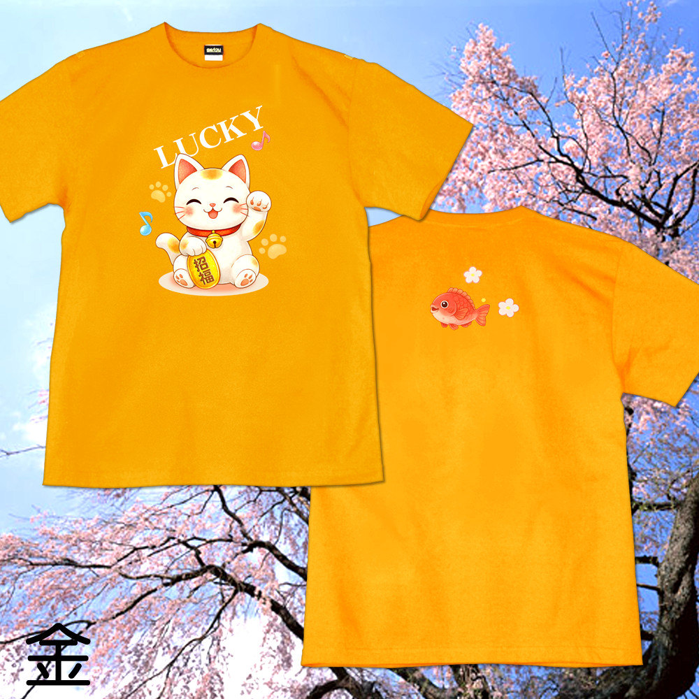 GENJU 招き猫 福 幸運 小判 お祝い メンズ レディース Tシャツ 半袖 長袖 招福招き猫 大きめサイズあり XXL XXXL 2L 3L 4L