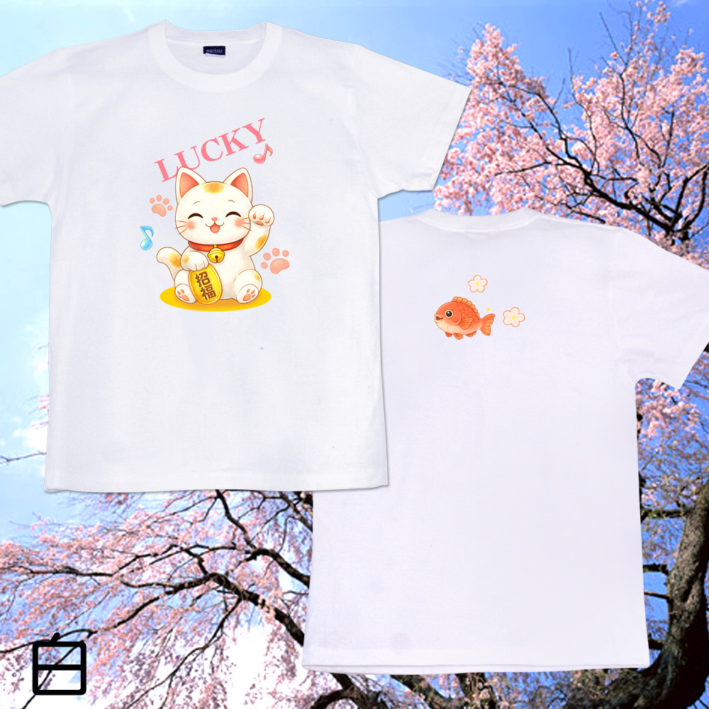 • 何とも幸運が寄ってきそうな可愛らしい招き猫デザイン☆ 敢えて文字は和ではなく英語でカジュアルなテイストにしています♪