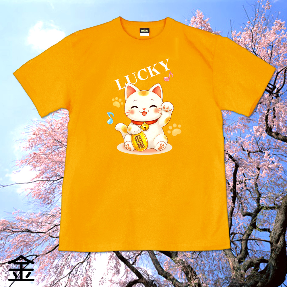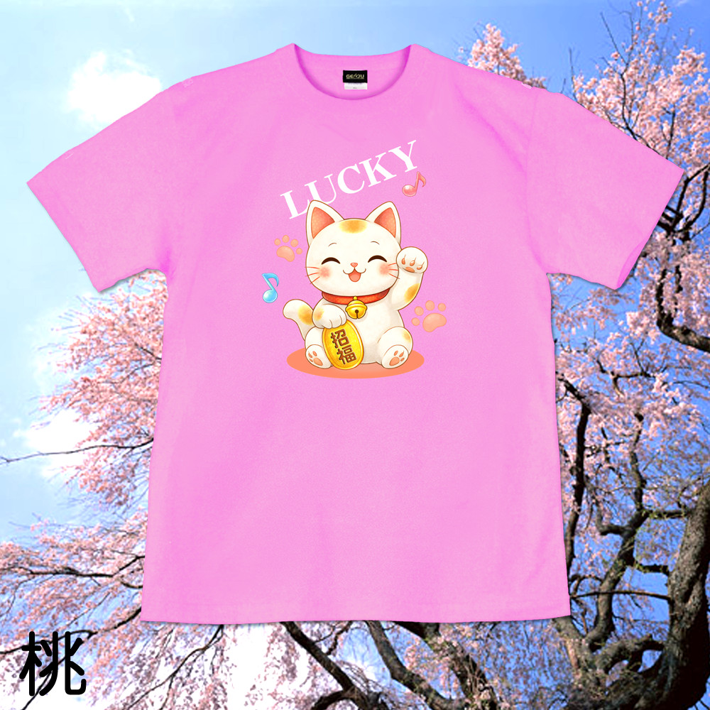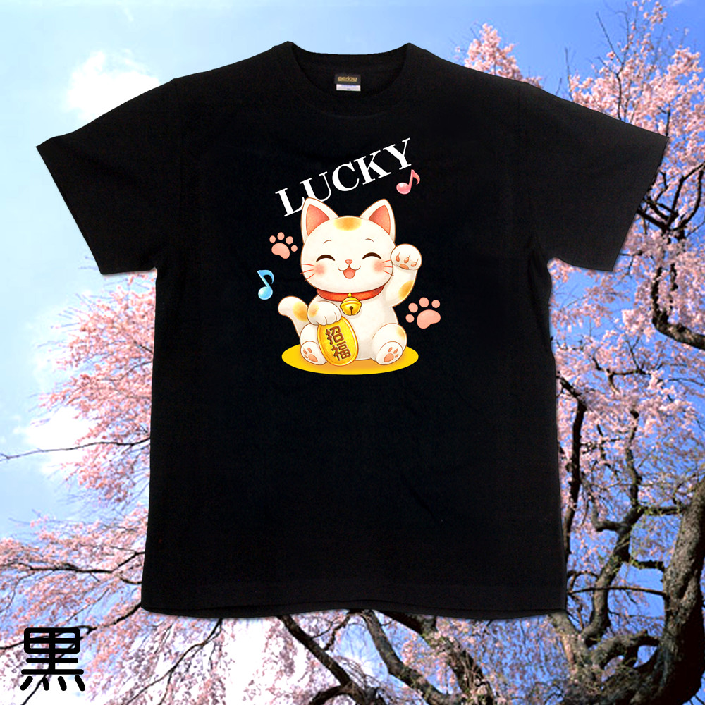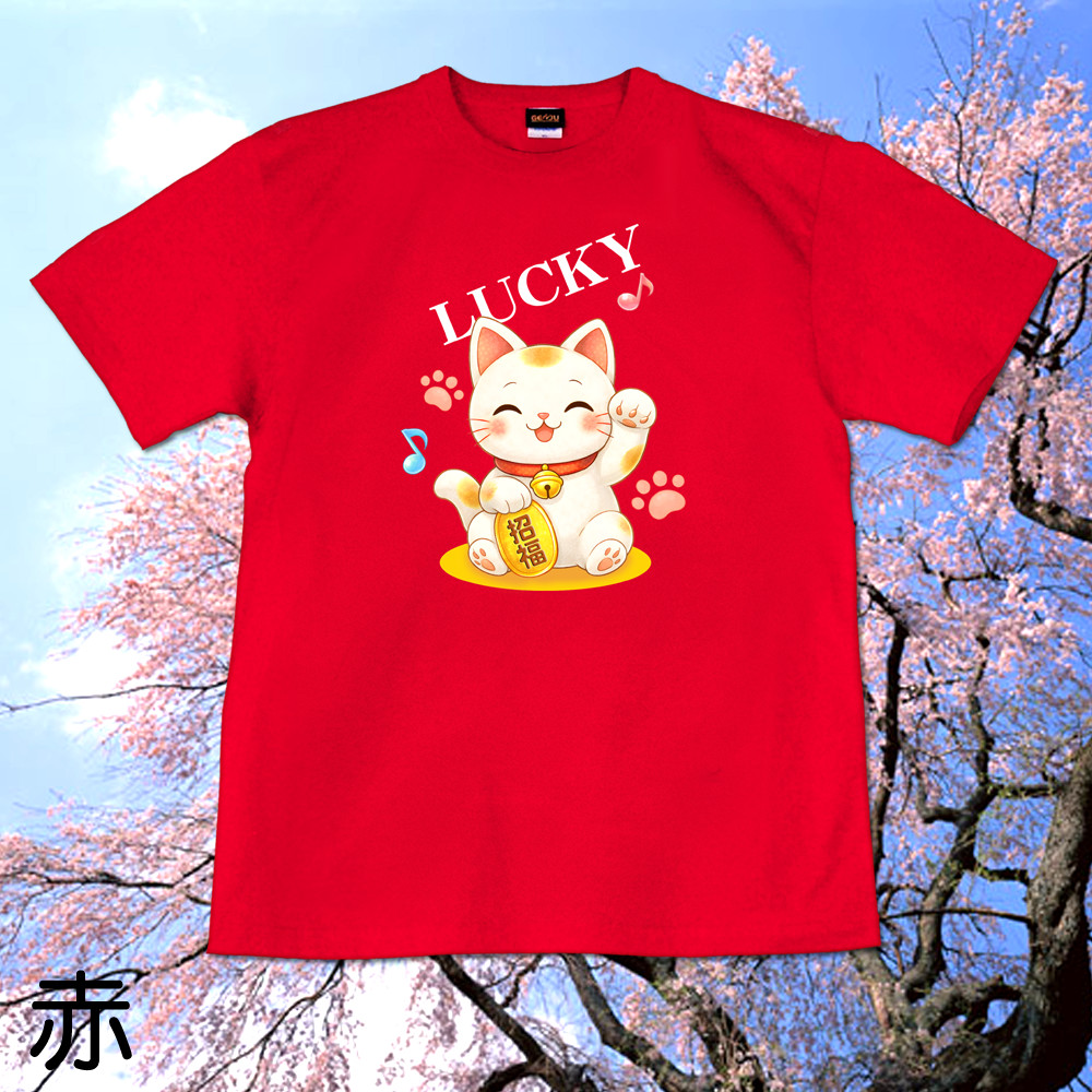 GENJU 招き猫 福 幸運 小判 お祝い メンズ レディース Tシャツ 半袖 長袖 招福招き猫 大きめサイズあり XXL XXXL 2L 3L 4L