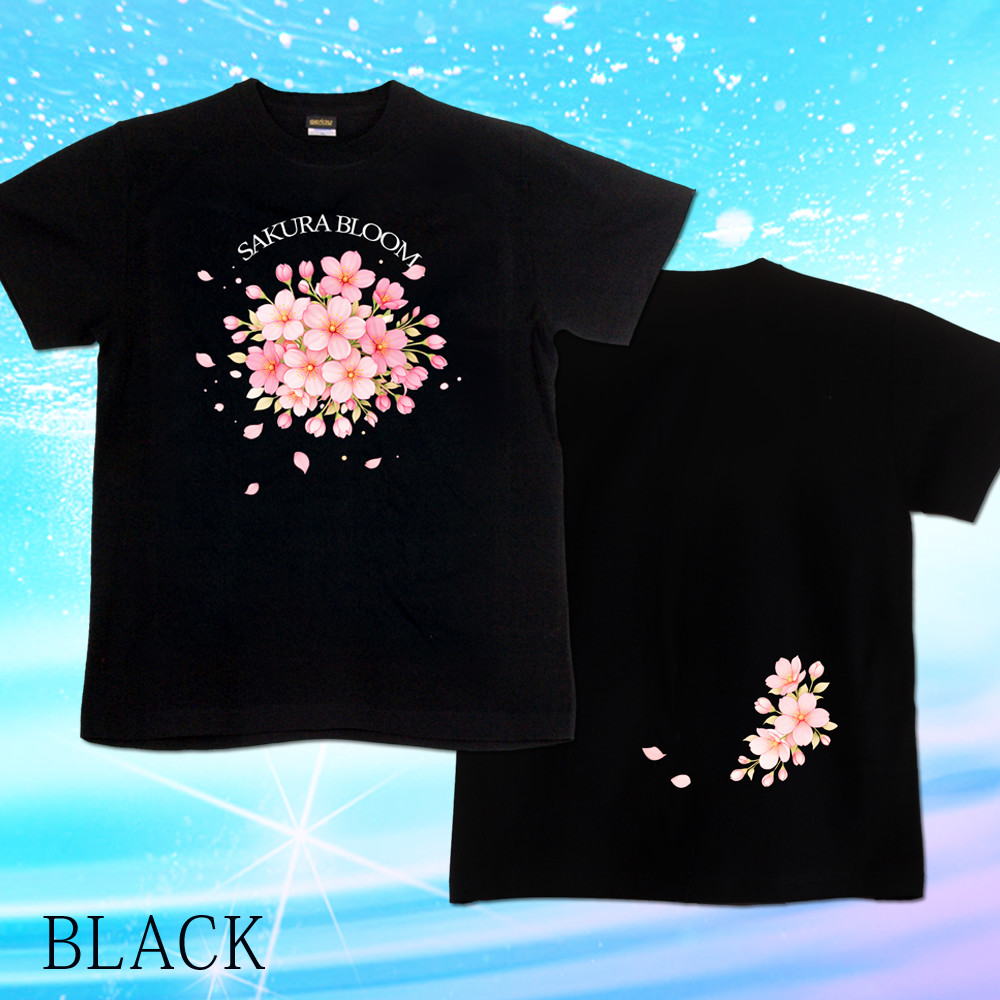 GENJU 桜 花見 春 スパンコール ラインストーン メンズ レディース Tシャツ 半袖 長袖 SAKURA BLOOM 大きめサイズあり XXL XXXL 2L 3L 4L