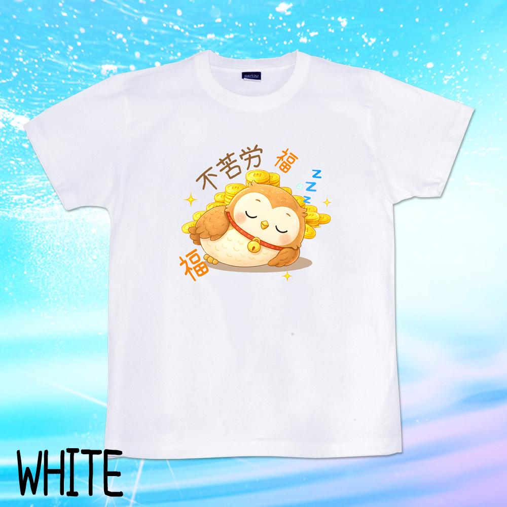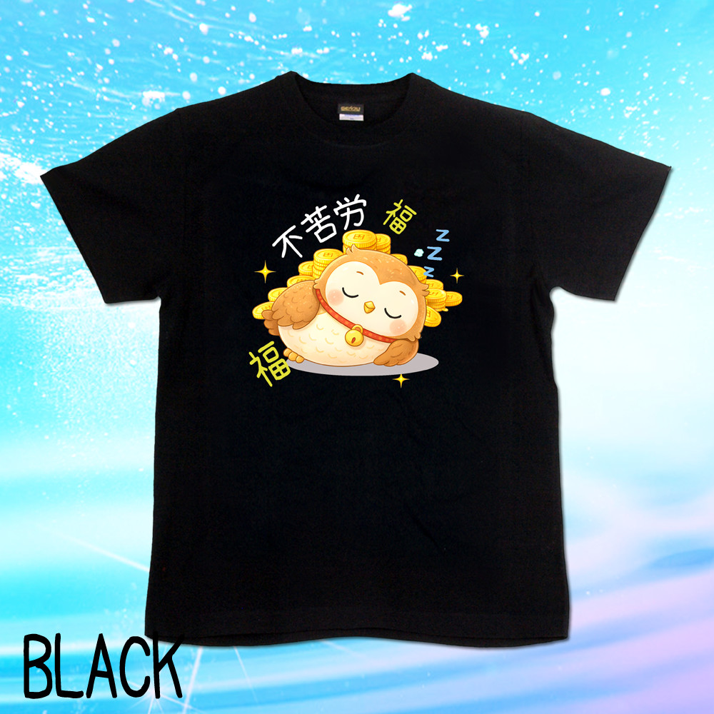 GENJU フクロウ 金運 福 メンズ レディース Tシャツ 半袖 長袖 不苦労 大きめサイズあり XXL XXXL 2L 3L 4L