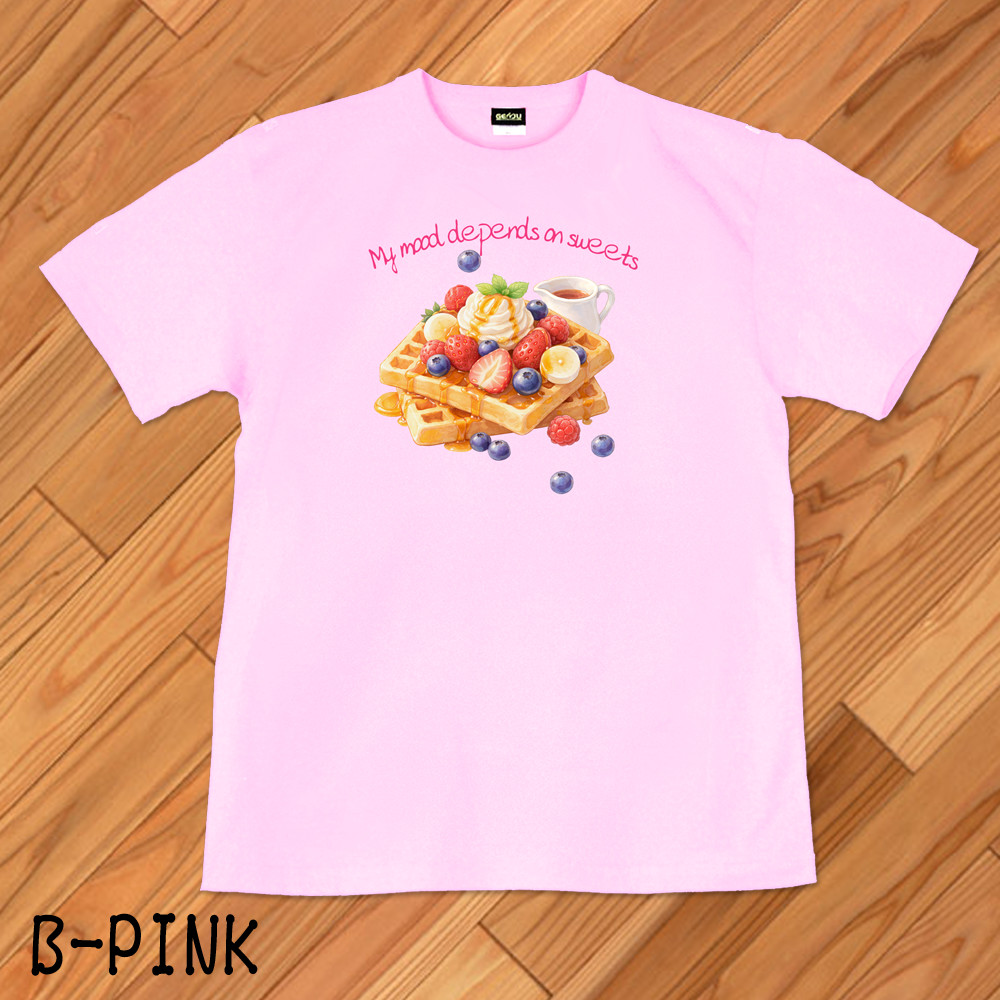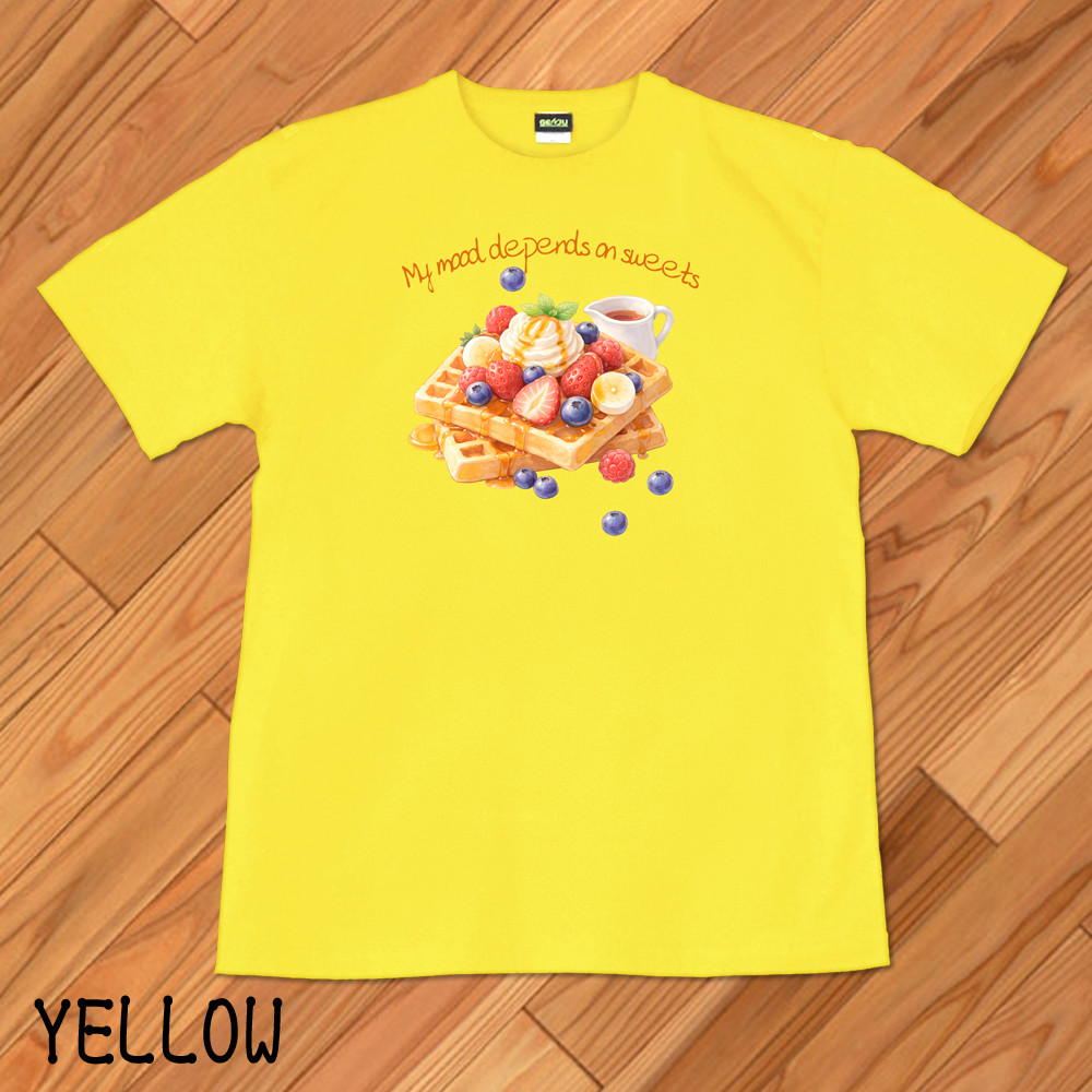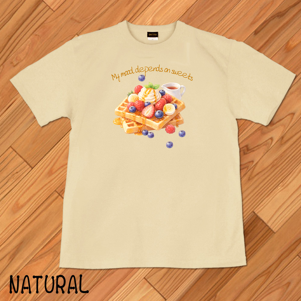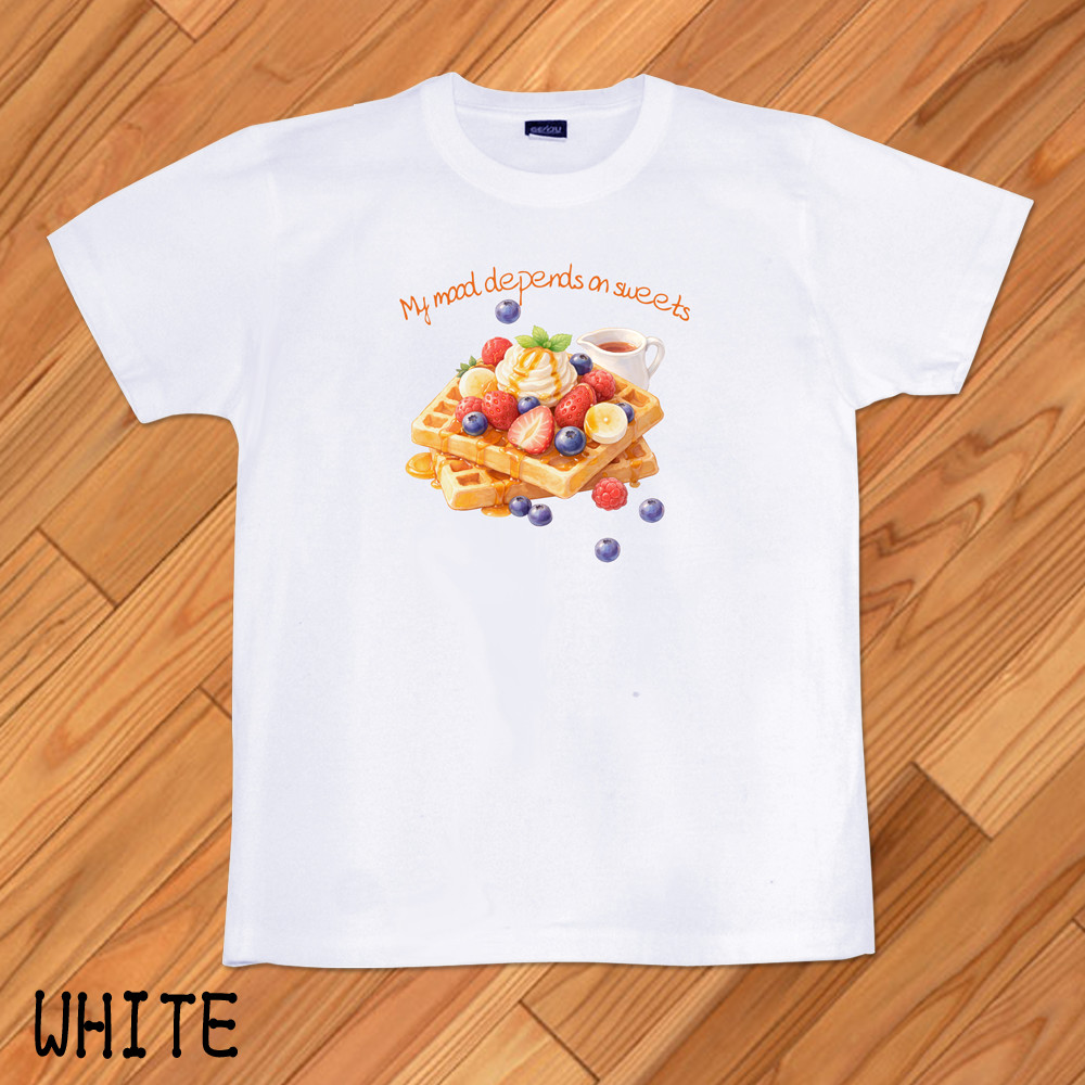 GENJU ワッフル 果物 はちみつ スイーツ アイスクリーム メンズ レディース Tシャツ 半袖 長袖 My mood depends on sweets3 大きめサイズあり XXL XXXL 2L 3L 4L