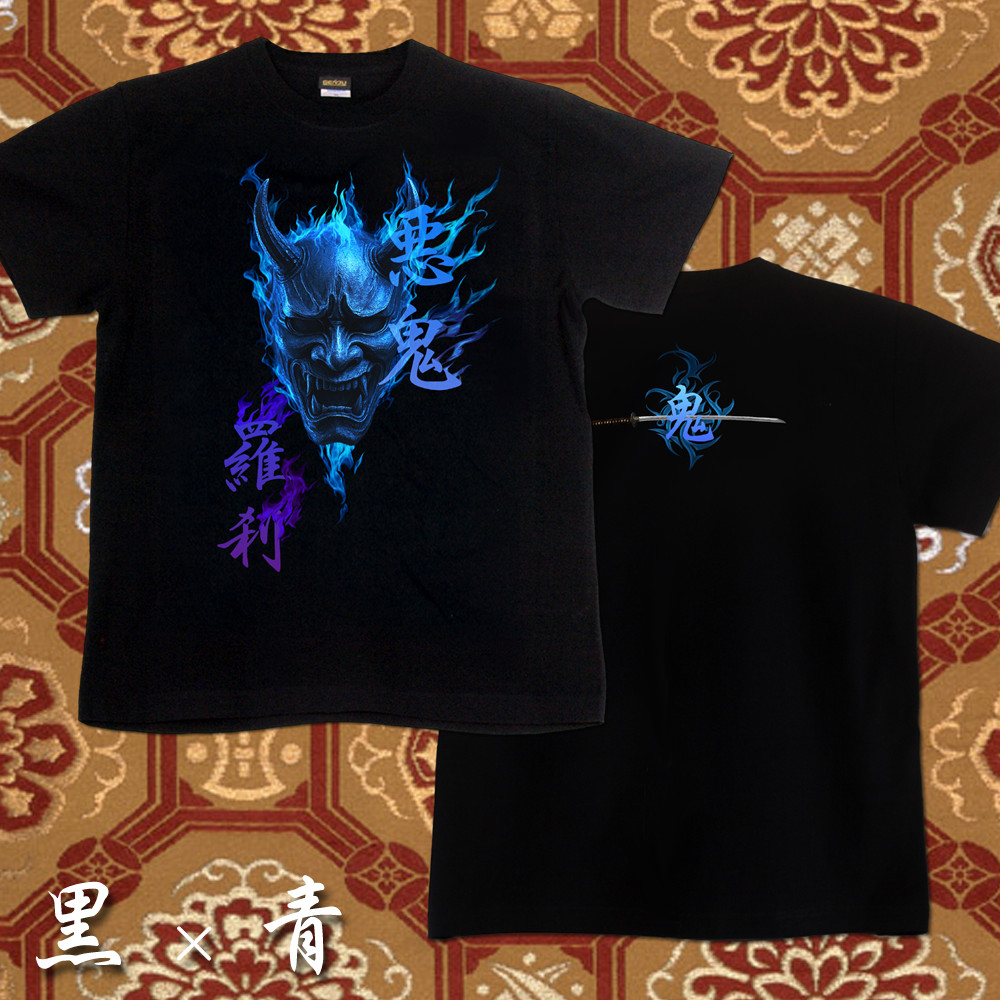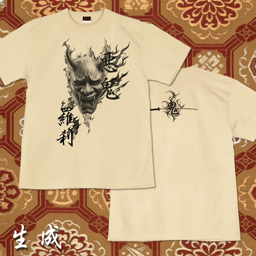 GENJU 般若 日本刀 炎 和柄 能面 悪鬼羅刹 メンズ レディース トライバル Tシャツ 半袖 長袖 羅刹の焔 大きめサイズあり XXL XXXL 2L 3L 4L