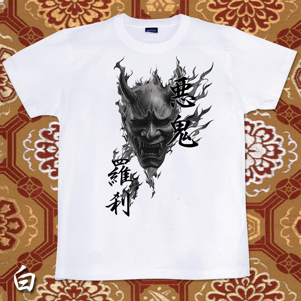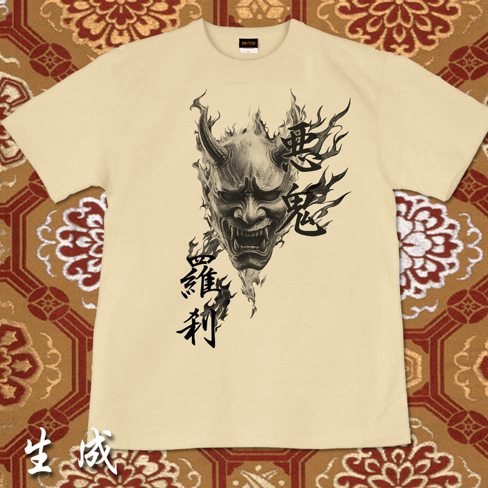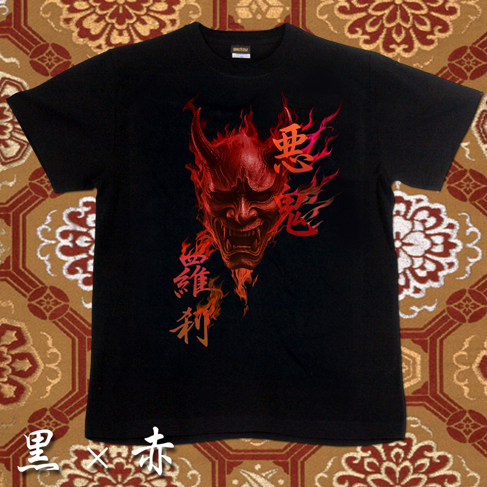 GENJU 般若 日本刀 炎 和柄 能面 悪鬼羅刹 メンズ レディース Tシャツ 半袖 長袖 羅刹の焔 大きめサイズあり XXL XXXL 2L 3L 4L